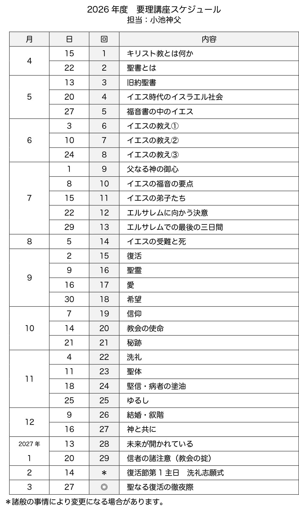 2026年講座スケジュール(全29回)