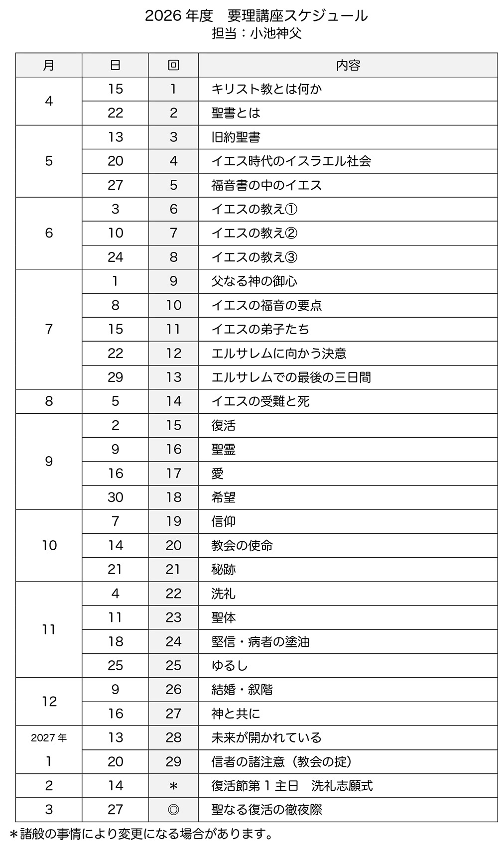 2026年講座スケジュール(全29回)